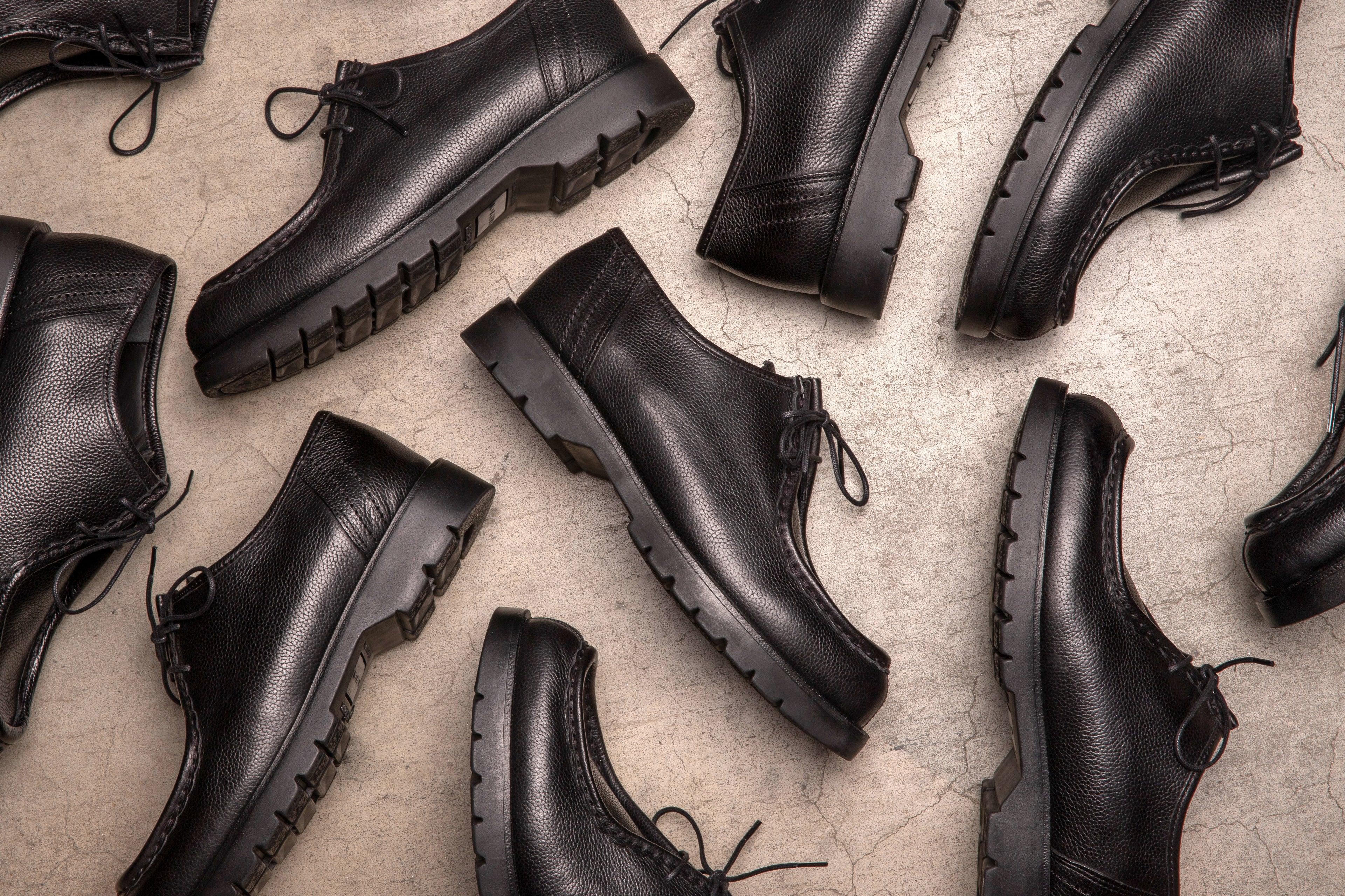 Derbies plateau à ourlet dentelé en cuir grainé noir