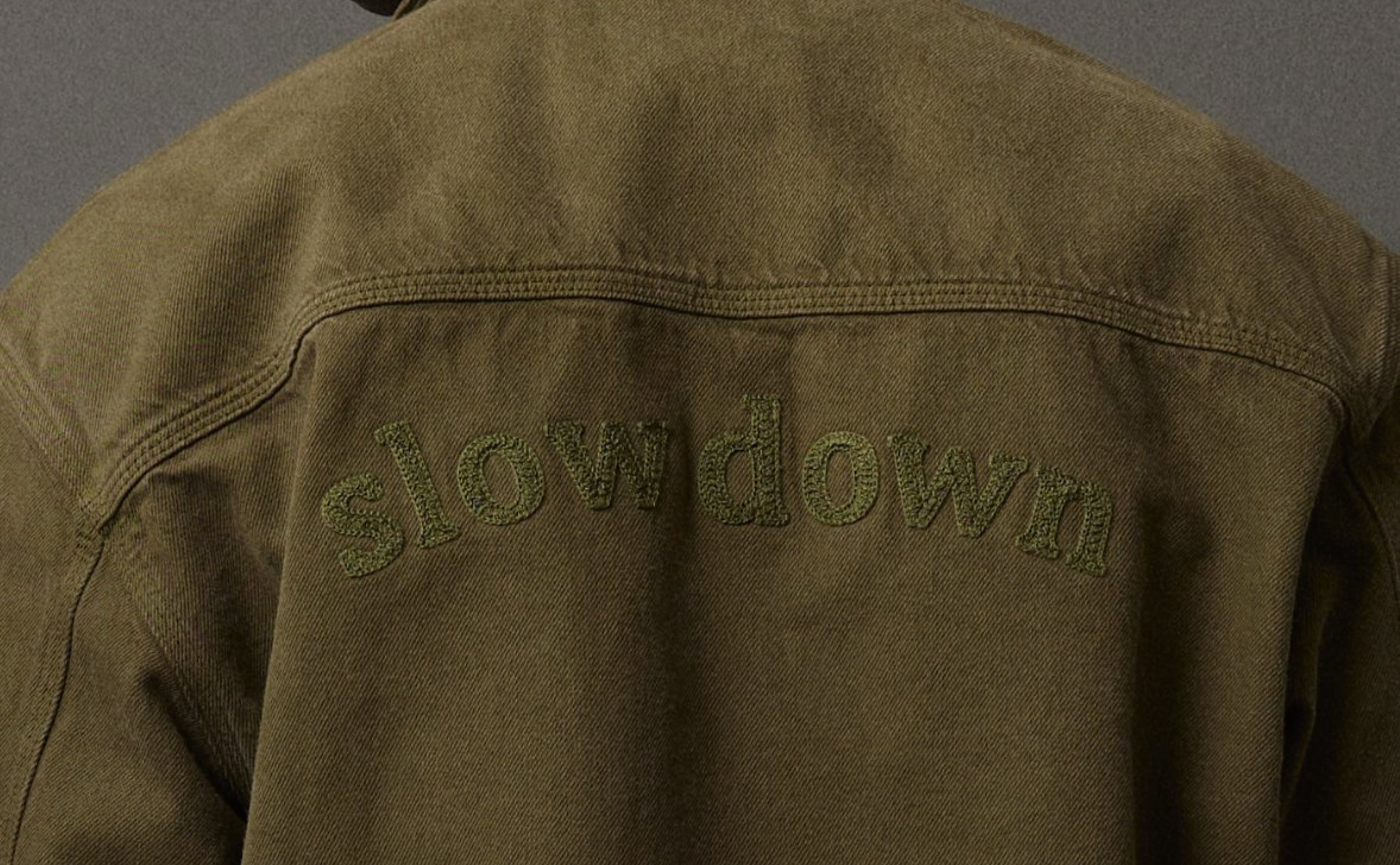 The meticulous details, such as the tone-on-tone corduroy pockets and the upcycled leather jacquard badge bearing the KLEMAN and FORÉT logos on the back of the trousers, reflect our commitment to quality and sustainability. The overshirt, meanwhile, is enhanced by a chain-link "SLOW DOWN" embroidery on the back, a subtle reminder of the importance of taking one's time.